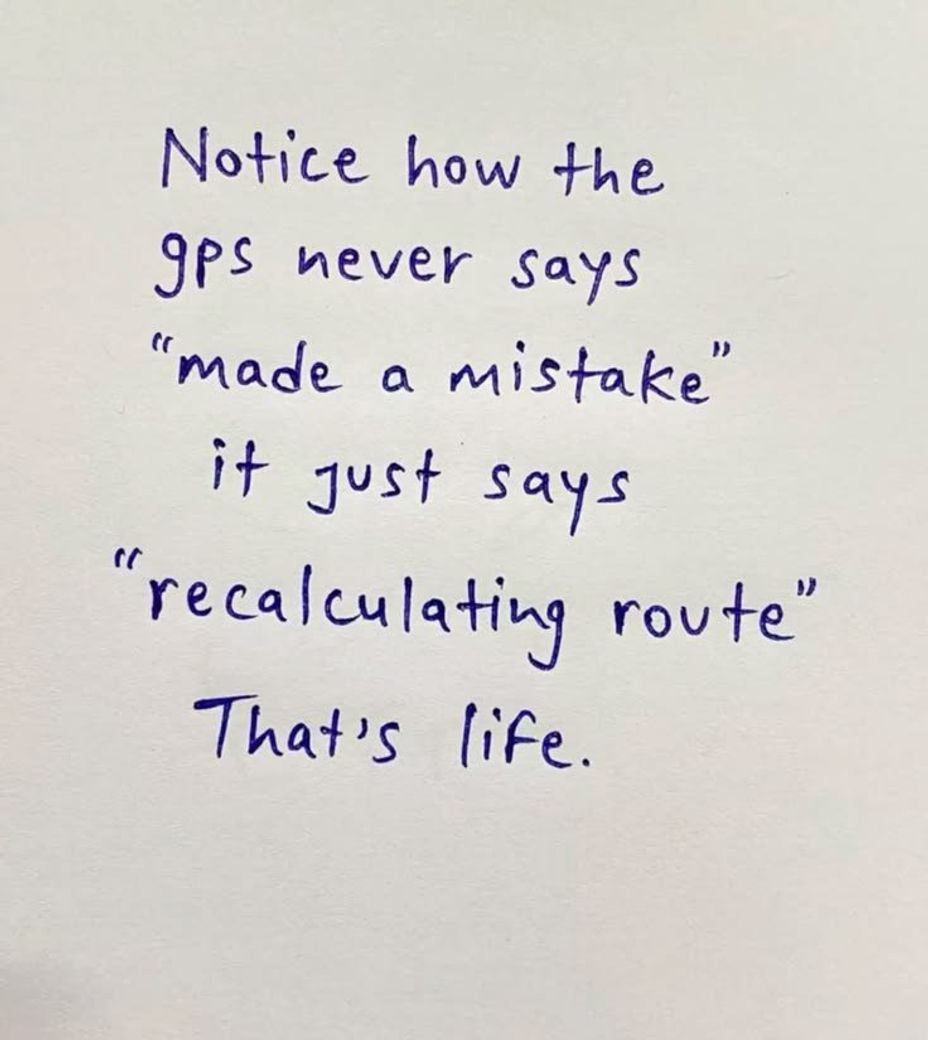 This is one of the best re-frames I've seen! How different would our days be if we could consider our "mistakes" as being "re-routed?"