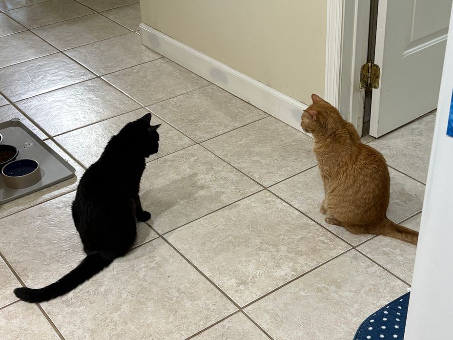 Here's a picture I took this morning of my two girls. The black one is Scamper, I inherited her when my best friend passed away in January. Cat is 18 years old, has hyperthyroidism so she's skin and bones. The meds gave her kidney and liver problems so we're trying to keep her as healthy as we can. The orange tabby is a rare female. Her name is Snickers. She's my little Covid baby. I got her from my friend during lockdown and she saved my life.
