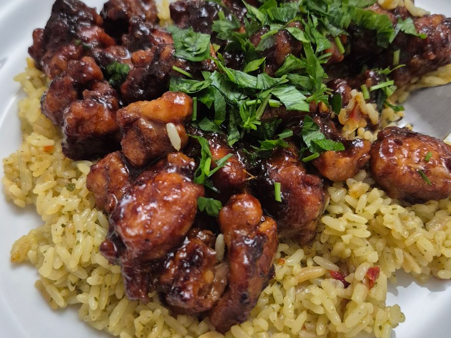 And miracle of miracles, it was good. Like, “Did I just accidentally cook something impressive?” good. The sauce was glossy, the rice soaked it up perfectly, and I was standing there like a Food Network contestant who blacked out mid-episode but still won.
