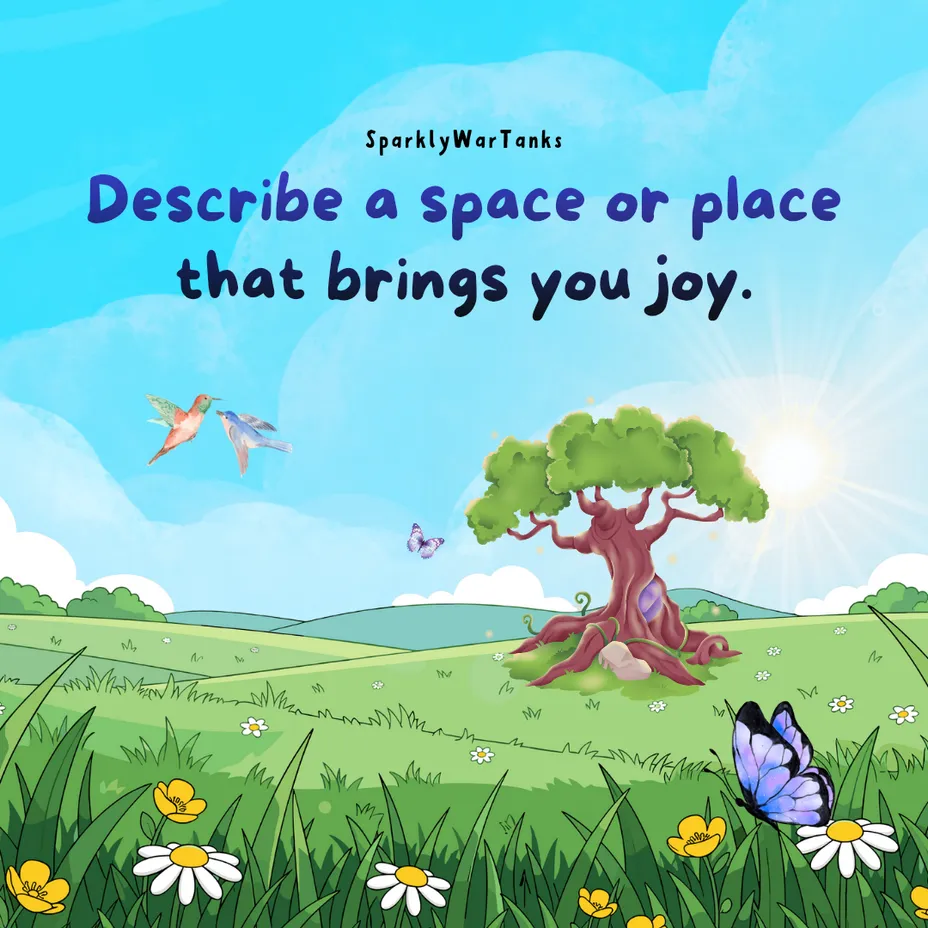 Describe a place or space that brings you joy and helps you feel safe. What does that place look like for you? What do you see, feel, touch, and smell?