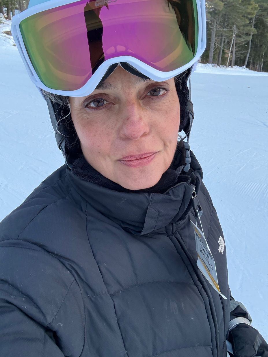 There I was with white wisps of hair peeking out from under my helmet, slowly navigating the mountain and working on the basics again. As I slid down the slope I would whisper to myself, trust your body.