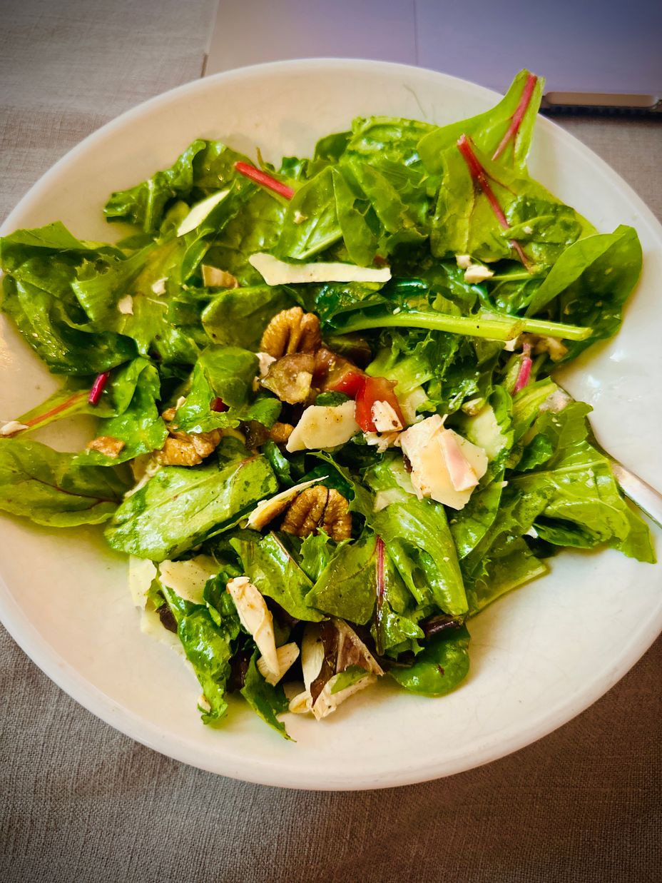 My first post here - so, since we grew our own tomatoes this summer, I thought I would share this. We are enjoying some that are diced in with our leftover chicken and parm salad with spinach, fresh pecans, olive oil and fresh lemon juice! These are Cherokee purple heirloom tomatoes and they have a slightly smoky taste. They were late bloomers so we have more coming in! This is my favorite kind of salad; the pecans are from a farm in Texas (Millican) and they’re fantastic! Thanks for letting me share 🙏 Hope everyone is well tonight ❤️
