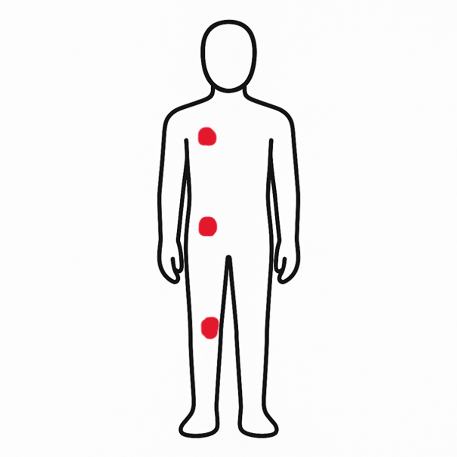 I have pain in one side of my body; between shoulder blade and spine, right hip, sometimes a bit in the other hip and inside right knee. I also feel tension in the right side of my head, both at the front, around the eyebrow, and at the back. And I sometimes notice when breathing deeply I breathe into my right side less.