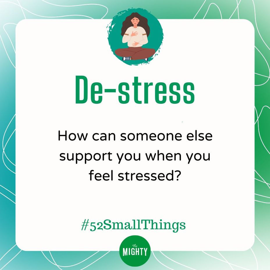 Mighty staffer @sparklywartanks says that when she feels stressed, someone simply checking in and offering her favorite snack can help her to take a moment to herself to gain some energy to keep moving forward.