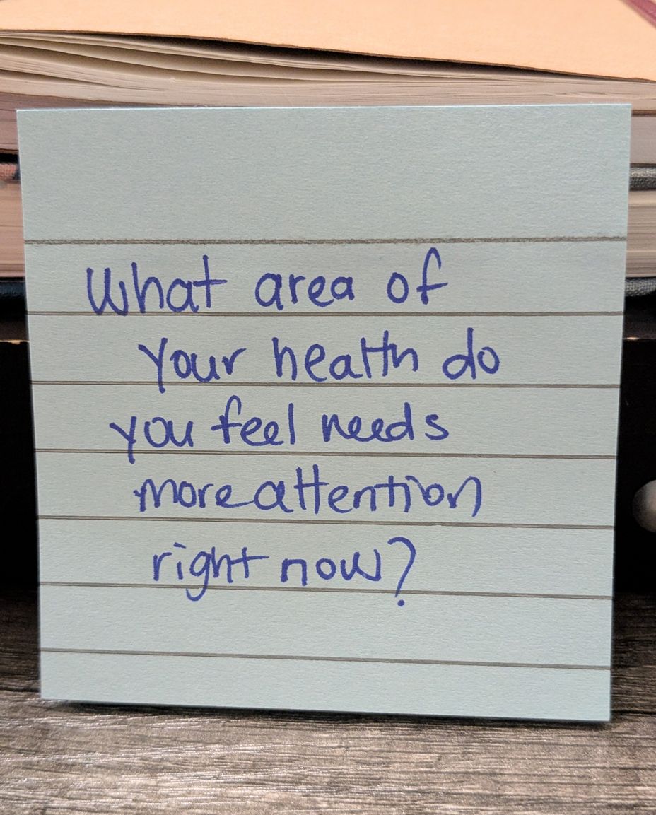 Based on what you have on your plate right now, what aspect of your health could use a little more attention or care? How are you thinking about prioritizing that area of your health?