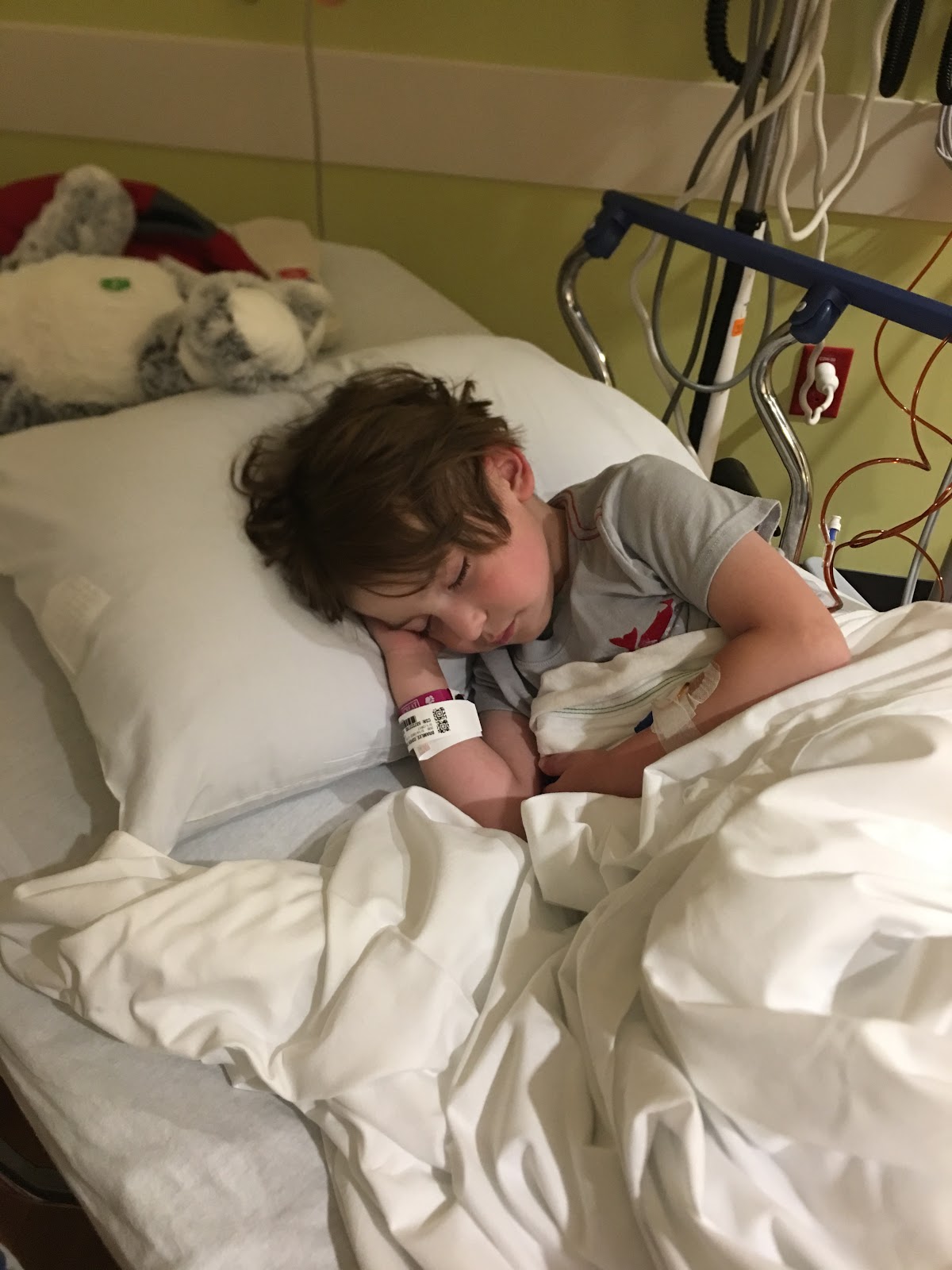 On the floor in front of them, sat a sweet little 5-year-old boy who had become very adjusted to his medical isolation, and apparently, without me knowing had become extremely aware of his own medical condition.